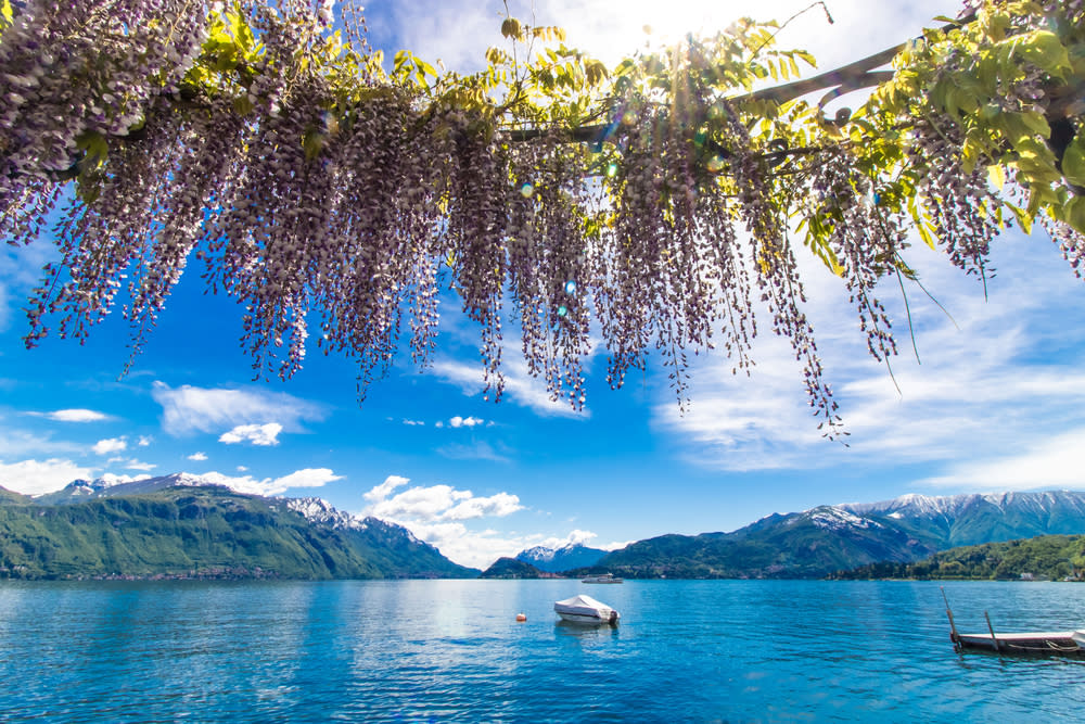 Springtime in Lake Como is very beautiful as the trees and flowers begin to blossom. Holiday makers should be prepared for a chance of rainfall though. Rain is fairly consistent across the year but spring is definitely the wettest season and can see torrential downpours which can last for 1 or 2 days. For example, May sees 128mm of rain across 16 days of the month. However, after the rain you'll be sure to be met with a good run of sunny clear days. March sees a pleasant 8 hours of sunshine a day, rising to 10 hours in April and a glorious 12 hours in May.